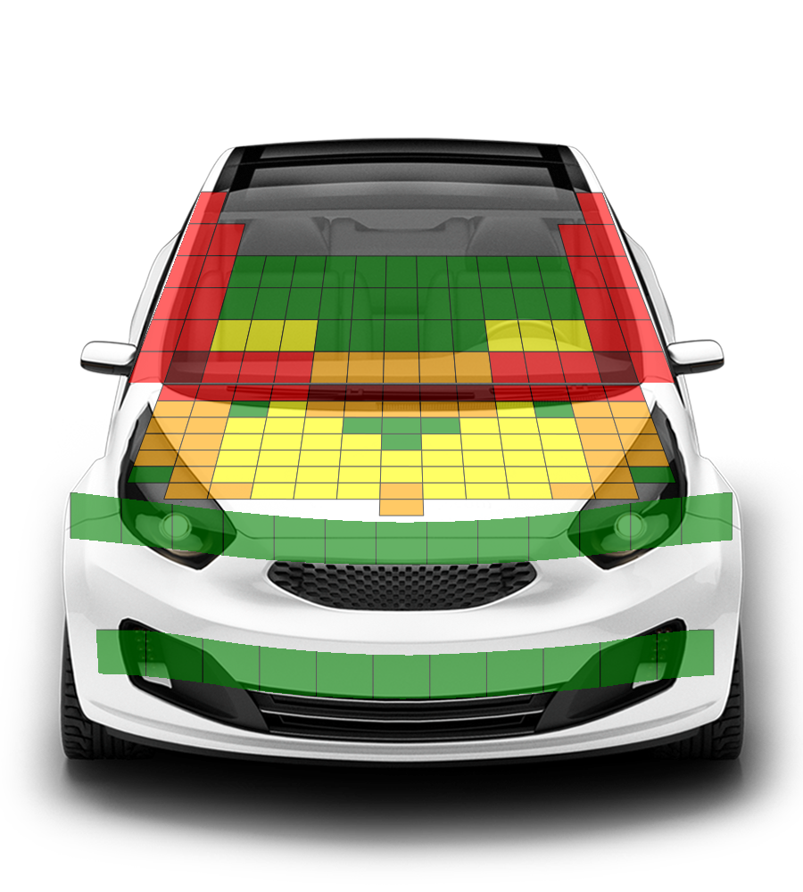 The protection offered by the bonnet to the head of a struck pedestrian was predominantly adequate. Poor results were recorded around the base of the windscreen and on the stiff windscreen pillars. The protection offered to the pelvis and to the legs were good, with maximum points scored in these areas of assessment.