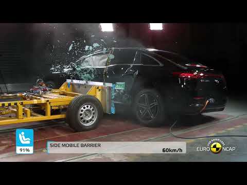 In both the frontal offset test and the side barrier impact, dummy readings indicated good protection of all critical body areas for both child dummies and the EQE scored maximum points in this part of the assessment. The front passenger airbag is automatically disabled when a rearward-facing child restraint is put in that seating position. Tests showed that the system worked robustly and the system was rewarded. All of the restraint types for which the EQE is designed could be properly installed and accommodated.