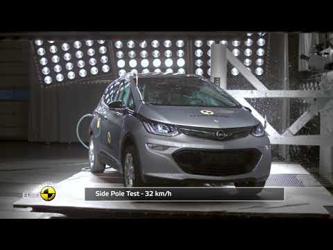 The passenger compartment remained stable in the frontal offset test. Dummy readings indicated good protection of the knees and femurs of both the driver and passenger. Opel showed that a similar level of protection would be provided to occupants of different sizes and to those sat in different positions. In the full-width rigid barrier test, protection of the driver was good for all critical body areas and for the rear passenger was good or adequate. In the side barrier impact, protection was good for all critical parts of the body and the Ampera-e scored full points. In the more severe side pole impact, protection of the chest was adequate and that of other body areas was good. Tests on the front seats and head restraints demonstrated marginal protection against whiplash injury in the event of a rear-end collision. A geometric assessment of the rear seats also indicated marginal protection. The Ampera-e has, as standard, an autonomous emergency braking (AEB) system. Tests of its functionality at the low speeds at which many whiplash injuries are caused showed good performance, with collisions avoided or mitigated at all test speeds. However, the car did not qualify for the AEB points as its front seats and head restraints did not score highly enough in the dynamic whiplash tests.