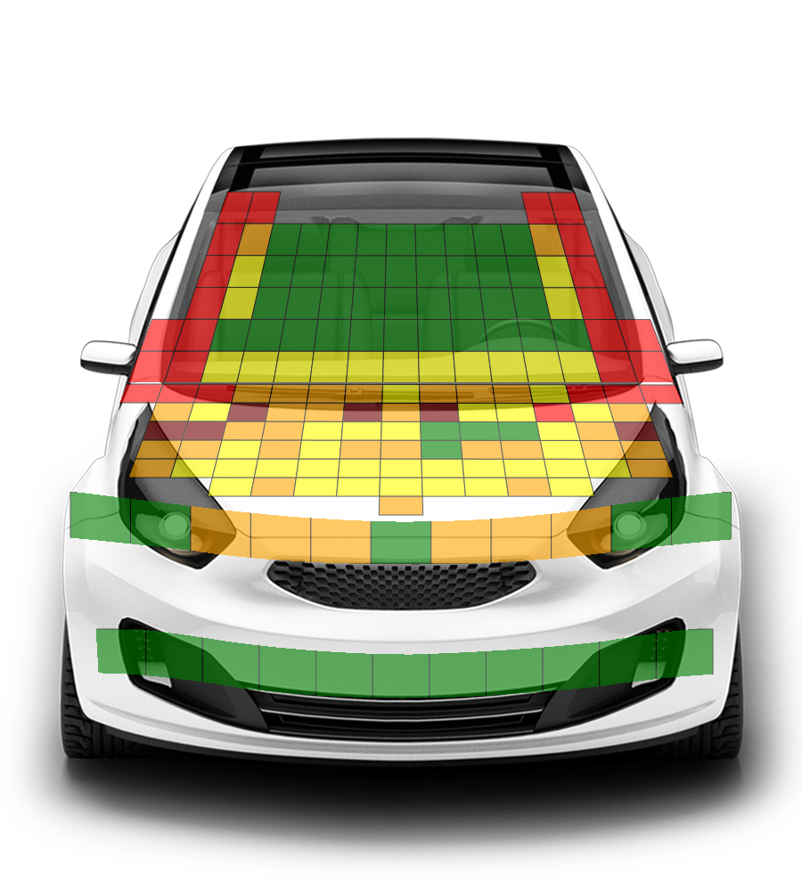 The protection provided to the head of a struck pedestrian was predominantly adequate or marginal on the bonnet surface, with poor results recorded along the base of the windscreen and on the stiff windscreen pillars. The protection provided to the pelvis was good in some areas and marginal in others, while the bumper provided good protection to pedestrians' legs. The autonomous emergency braking system works only for other cars and does not detect pedestrians.