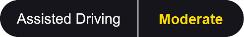 An Entry vehicle assistance system typically provides assistance in the less challenging scenarios and comprises only a basic ACC and Lane Centering system, with no additional features. Or, the system’s performance in Assistance Competence is highly unbalanced between Driver Engagement and Vehicle Assistance. The safety back-up is limited.
