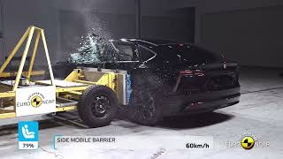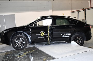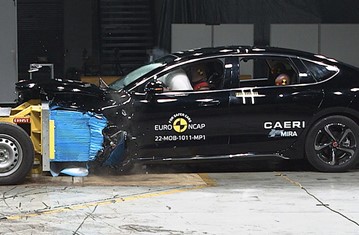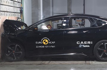 The passenger compartment of the Limo remained stable in the frontal offset test. Inspection of the vehicle after the test revealed a rupture of the driver’s footwell. A penalty was applied to the score and Mobilize were precluded from demonstrating good knee and femur protection to occupants of sizes other than the dummies used, leading to a marginal rating for that body region. Protection of the driver’s chest was rated as marginal, based on dummy readings of compression. Analysis of the deceleration of the impact trolley during the test, and analysis of the deformable barrier after the test, revealed that the Limo would be a somewhat aggressive impact partner in a frontal collision. In the full-width rigid barrier test, protection of all critical body areas was good or adequate, apart from the driver’s chest, protection of which was rated as marginal based on compression. In the side barrier test, protection of all critical body areas was good but the test score was penalised as the door lock on the rear, impacted side was found to have released. In the more severe side pole impact, chest protection was rated as weak, based on rib compressions, but that of other critical body regions was good. Control of excursion (the extent to which a body is thrown to the other side of the vehicle when it is hit from the far side) was found to be adequate. The Limo has a counter-measure to mitigate against occupant to occupant injuries in such impacts. The system performed well in Euro NCAP’s test, with good protection of occupants’ heads. However, Mobilize could not demonstrate robust, symmetrical performance of the centre airbag and the score was penalised. Tests on the front seats and head restraints demonstrated good protection against whiplash injuries in the event of a rear-end collision. A geometric analysis of the rear seats also indicated good whiplash protection. The Limo has an advanced eCall system which alerts the emergency services in the event of a crash. The car also has a system which applies the brakes after an impact to avoid secondary collisions.