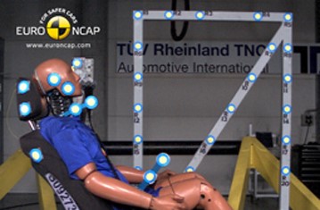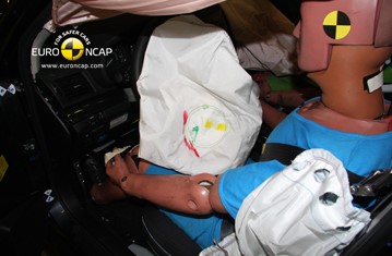 The passenger compartment remained stable in the frontal impact. Structures in the dashboard presented a risk of injury to the knees and femurs of the driver and front passenger, and protection of that body region was rated as marginal. Good protection was provided in the side barrier test and the car scored maximum points. In the more severe side pole impact, readings from the dummy chest indicated a weak level of protection. Marginal protection was provided against whiplash injuries in the event of a rear impact.