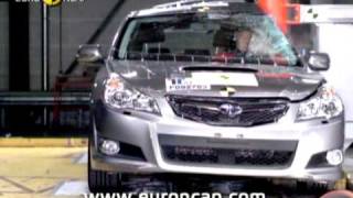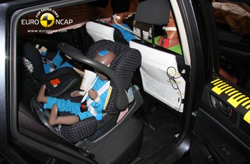 Forward movement of the 3 year dummy's head was not excessive in the frontal impact. In the side impact, the heads of both dummies were properly contained by their respective restraints. The passenger airbag can be disabled by Subaru dealers to allow a rearward facing child restraint to be used in that seating position. The dangers of doing so without first disabling the airbag are explained in a sun visor label which is permanently attached, but this label is not available in all European languages.