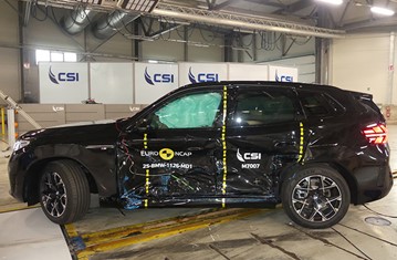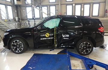 The passenger compartment of the BMW X3 remained stable in the frontal offset test. Dummy readings indicated good protection of the knees and femurs of both the driver and the front seat passenger. BMW showed that a similar level of protection would be provided to occupants of different sizes and to those sitting in different positions. Protection of the driver’s chest was rated as marginal, based on dummy readings of compression. Analysis of the deceleration of the impact trolley during the test, and analysis of the deformable barrier after the test, revealed that the BMW X3 would be a moderately benign impact partner in a frontal collision. In the full-width rigid barrier test, protection was good for all critical areas of the driver but was marginal for the chest of the rear passenger. In the side barrier test, the BMW X3 provided good protection to all critical body areas and scored maximum points. In the more severe side pole impact, protection was at least adequate for all critical body areas. Control of excursion (the extent to which a body is thrown to the other side of the vehicle when it is hit from the far side) was found to be adequate. The BMW X3 has a countermeasure to mitigate against occupant-to-occupant injuries in such impacts. The airbag performed well in Euro NCAP’s tests with dummy readings indicating good protection for both the driver and passenger. Tests on the front seats and head restraints demonstrated good protection against whiplash injuries in the event of a rear-end collision. A geometric analysis of the rear seats also indicated good whiplash protection. The car has an advanced eCall system which alerts the emergency services in the event of a crash, and a system to prevent secondary impacts after the car has been in a collision. BMW demonstrated that the doors and windows would be openable to allow occupants to escape in the event of vehicle submergence.