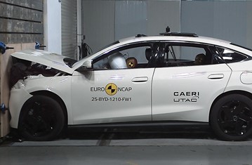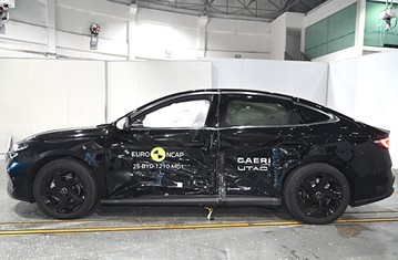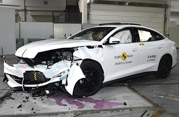 The passenger compartment of the BYD SEAL 6 remained stable in the frontal offset test. Dummy readings indicated good protection of the knees and femurs of both the driver and the front seat passenger. BYD showed that a similar level of protection would be provided to occupants of different sizes and to those sitting in different positions. Protection was good for all critical body areas of the front passenger. Analysis of the deceleration of the impact trolley during the test, and analysis of the deformable barrier after the test, revealed that the BYD SEAL 6 would be a moderately benign impact partner in a frontal collision. In the full-width rigid barrier test protection was good for all critical body regions of both the driver and the rear seat passenger. In both the side barrier test and the more severe side pole impact, good protection was provided to all critical body areas and the BYD SEAL 6 scored maximum points in this part of the assessment. Control of excursion (the extent to which a body is thrown to the other side of the vehicle when it is hit from the far side) was found to be adequate The BYD SEAL 6 has a countermeasure to mitigate against occupant-to-occupant injuries in such impacts. The airbag performed well in Euro NCAP’s tests with dummy readings indicating good protection for both the driver and passenger. Tests on the front seats and head restraints demonstrated good protection against whiplash injuries in the event of a rear-end collision. A geometric analysis of the rear seats also indicated good whiplash protection. The car has an advanced eCall system which alerts the emergency services in the event of a crash, and a system to prevent secondary impacts after the car has been in a collision. BYD demonstrated that the doors and windows would be openable to allow occupants to escape in the event of vehicle submergence.