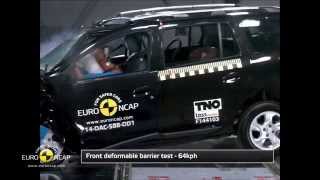 Based on dummy readings in the crash tests, the Logan MCV scored maximum points for its protection of the 1½ year dummy. In the frontal impact, forward movement of the 3 year dummy, sat in a forward-facing restraint, was not excessive. However, tensile forces in the neck were high, losing all points, and forces in the chest were marginally so. The front passenger airbag can be disabled to allow a rearward-facing child restraint to be used in that seating position. However, the switch to change the airbag status is marked only by a removable label, and the system was not rewarded. All of the restraint types for which the car is designed could be properly installed and accommodated in the car with the exception of the semi-universal Group 0 restraint which uses a support leg. In the rear centre seating position this support leg cannot be properly installed because of the centre tunnel.