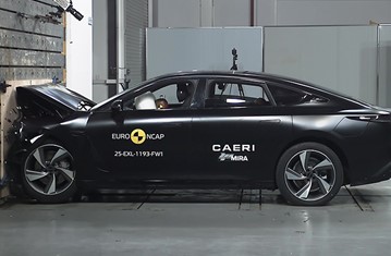 The passenger compartment of the EXLANTIX ES remained stable in the frontal offset test. Dummy readings indicated good protection of the knees and femurs of both the driver and the front seat passenger. EXLANTIX showed that a similar level of protection would be provided to occupants of different sizes and to those sitting in different positions. Analysis of the deceleration of the impact trolley during the test, and analysis of the deformable barrier after the test, revealed that the EXLANTIX ES would be a moderately benign impact partner in a frontal collision. In the full-width rigid barrier test, protection was rated as marginal for the chest of the driver and rear passenger, based on dummy readings of compression. In the side barrier test, the EXLANTIX ES provided good protection to all critical body areas and scored maximum points. In the more severe side pole impact, protection was at least adequate for all critical body areas. Control of excursion (the extent to which a body is thrown to the other side of the vehicle when it is hit from the far side) was found to be adequate The EXLANTIX ES has a countermeasure to mitigate against occupant-to-occupant injuries in such impacts. The airbag performed well in Euro NCAP’s tests with dummy readings indicating good protection for both the driver and passenger. Tests on the front seats and head restraints demonstrated good protection against whiplash injuries in the event of a rear-end collision. A geometric analysis of the rear seats also indicated good whiplash protection. The car has an advanced eCall system which alerts the emergency services in the event of a crash, and a system to prevent secondary impacts after the car has been in a collision. EXLANTIX demonstrated that the doors and windows would be openable to allow occupants to escape in the event of vehicle submergence.
