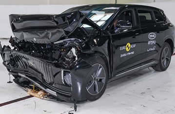The passenger compartment of the EXLANTIX ET remained stable in the frontal offset test. Dummy readings indicated good protection of the knees and femurs of both the driver and the front seat passenger. EXLANTIX showed that a similar level of protection would be provided to occupants of different sizes and to those sitting in different positions. Protection of all critical body areas of the passenger was good. Analysis of the deceleration of the impact trolley during the test, and analysis of the deformable barrier after the test, revealed that the EXLANTIX ET would be a benign impact partner in a frontal collision. In the full-width rigid barrier test, protection was rated as marginal for the chest of the rear passenger, based on dummy readings of compression. Protection was otherwise good or adequate. In the side barrier test, the EXLANTIX ET provided good protection to all critical body areas and scored maximum points. In the more severe side pole impact, protection was at least adequate for all critical body areas. Control of excursion (the extent to which a body is thrown to the other side of the vehicle when it is hit from the far side) was found to be marginal The EXLANTIX ET has a countermeasure to mitigate against occupant-to-occupant injuries in such impacts. The airbag performed well in Euro NCAP’s tests with dummy readings indicating good protection for both the driver and passenger. Tests on the front seats and head restraints demonstrated good protection against whiplash injuries in the event of a rear-end collision. A geometric analysis of the rear seats also indicated good whiplash protection. The car has an advanced eCall system which alerts the emergency services in the event of a crash, and a system to prevent secondary impacts after the car has been in a collision. EXLANTIX demonstrated that the doors and windows would be openable to allow occupants to escape in the event of vehicle submergence.