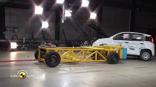The passenger compartment of the Panda remained stable in the frontal offset test. Dummy readings of driver chest compression indicated weak protection of this body area. Test results showed good protection of the knees and femurs of both the driver and passenger dummies. FIAT showed that a similar level of protection would be provided to occupants of different sizes and to those sitting in different positions. In the full-width rigid barrier test, dummy readings indicated weak protection of the head and neck. Protection of the chest was marginal. Dummy readings of rear passenger chest compression led to a low score for this body region, and this was further penalised because of high shoulder belt loads, leading to the protection being rated as poor. Protection of the passenger's neck was also weak. In the side barrier test, protection of the chest was rated as marginal, based on readings of rib compression, with other critical body regions being well protected. No pole test was conducted. Tests on the front seats and head restraints demonstrated marginal protection against whiplash injuries in the event of a rear-end collision. A geometric assessment of the rear seats indicated poor whiplash protection. The Panda is not equipped with an autonomous emergency braking system.