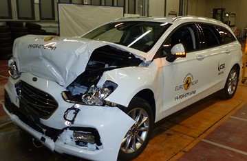 The passenger compartment of the Mondeo remained stable in the frontal offset test. Dummy readings indicated good protection of the knees and femurs of the driver and passenger. Ford showed that a similar level of protection would be provided to occupants of different sizes and to those sitting in different positions. In the full-width rigid barrier test, protection of all critical body areas was good or adequate for both the driver and rear passenger. In both the side barrier and the more severe side pole tests, protection of all critical body areas was good and the car scored full points in both of these tests. Tests on the front seats and head restraints demonstrated good protection against whiplash injuries in the event of a rear-end collision. A geometric assessment of the rear seats also indicated good whiplash protection. The standard-fit autonomous emergency braking (AEB) system performed well in tests of its functionality at the low speeds at which many whiplash injuries occur.
