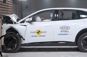 The passenger compartment of the Hongqi EHS5 remained stable in the frontal offset test. Dummy readings indicated good protection of the knees and femurs of both the driver and the front seat passenger. Hongqi showed that a similar level of protection would be provided to occupants of different sizes and to those sitting in different positions. Protection of all critical body areas was good for the front passenger. Analysis of the deceleration of the impact trolley during the test, and analysis of the deformable barrier after the test, revealed that the Hongqi EHS5 would be a benign impact partner in a frontal collision. In the full-width rigid barrier test, protection was good or adequate for all critical body regions of the driver rear seat passenger. In the side barrier test, the Hongqi EHS5 provided good protection to all critical body areas and scored maximum points. In the more severe side pole impact, protection was marginal for the driver’s chest but at least adequate for other critical body areas. Control of excursion (the extent to which a body is thrown to the other side of the vehicle when it is hit from the far side) was found to be adequate The Hongqi EHS5 has a countermeasure to mitigate against occupant-to-occupant injuries in such impacts. The airbag performed well in Euro NCAP’s tests with dummy readings indicating good protection for both the driver and passenger. Tests on the front seats and head restraints demonstrated good protection against whiplash injuries in the event of a rear-end collision. A geometric analysis of the rear seats also indicated good whiplash protection. The car has an advanced eCall system which alerts the emergency services in the event of a crash, and a system to prevent secondary impacts after the car has been in a collision. Hongqi demonstrated that the doors and windows would be openable to allow occupants to escape in the event of vehicle submergence.