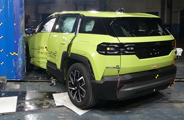 The passenger compartment of the Jeep Compass remained stable in the frontal offset test. Dummy readings indicated good protection of the knees and femurs of both the driver and the front seat passenger. Jeep showed that a similar level of protection would be provided to occupants of different sizes and to those sitting in different positions. Analysis of the deceleration of the impact trolley during the test, and analysis of the deformable barrier after the test, revealed that the Jeep Compass would be a moderately benign impact partner in a frontal collision. In the full-width rigid barrier test protection was good or adequate for all critical body regions of the driver rear seat passenger. In the side barrier test, the Jeep Compass provided good protection to all critical body areas and scored maximum points. In the more severe side pole impact, protection was at least adequate for all critical body areas. Control of excursion (the extent to which a body is thrown to the other side of the vehicle when it is hit from the far side) was found to be marginal The Jeep Compass does not have a countermeasure to mitigate against occupant-to-occupant injuries in such impacts. Tests on the front seats and head restraints demonstrated good protection against whiplash injuries in the event of a rear-end collision. A geometric analysis of the rear seats also indicated good whiplash protection. The car has an advanced eCall system which alerts the emergency services in the event of a crash, and a system to prevent secondary impacts after the car has been in a collision. Jeep demonstrated that the doors would be openable to allow occupants to escape in the event of vehicle submergence.