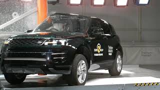 The passenger compartment of the Evoque remained stable in the frontal offset test. Dummy readings indicated good protection of the knees and femurs of both driver and passenger. Land Rover showed that a similar level of protection would be provided to occupants of different sizes and to those sitting in different positions. Protection was good for all critical body areas of the passenger. In the full-width rigid barrier test, protection was good or adequate for the driver and the rear passenger. In the side barrier test, protection was good for all critical body areas and maximum points were scored. Even in the more severe side pole impact, protection of the chest was adequate and that of other parts of the body was good. Tests on the front seats and head restraints demonstrated good protection against whiplash injuries in the event of a rear-end impact. A geometric assessment of the rear seats indicated marginal whiplash protection. The Evoque has a standard-fit autonomous emergency braking (AEB) system which scored maximum points in tests of its functionality at the low speeds, typical of city driving, at which many whiplash injuries occur.