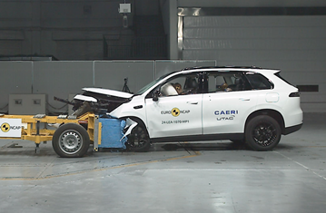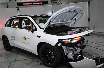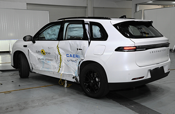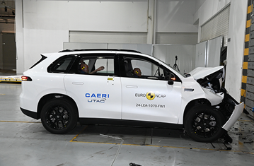 The passenger compartment of the Leapmotor C10 remained stable in the frontal offset test. Dummy readings indicated good protection of the knees and femurs for the driver and front passenger. Leapmotor demonstrated that a similar level of protection would be provided to occupants of different sizes and to those sitting in different positions. Analysis of the deceleration of the impact trolley during the test, and analysis of the deformable barrier after the test, revealed that the Leapmotor C10 would be a benign impact partner in a frontal collision. In the full-width rigid barrier test, protection of the driver’s chest was marginal but that of all other critical body regions was good or adequate, both for the driver and the rear passenger. In both the side barrier test and the more severe side pole impact, full points were scored, with good protection of all critical body regions. Control of excursion (the extent to which a body is thrown to the other side of the vehicle when it is hit from the far side) was found to be adequate. The Leapmotor C10 has a countermeasure to mitigate against occupant-to-occupant injuries in such impacts. The airbag performed well in Euro NCAP’s tests with dummy readings indicating good protection for both the driver and passenger. Tests on the front seats and head restraints demonstrated good protection against whiplash injuries in the event of a rear-end collision. A geometric analysis of the rear seats also indicated good whiplash protection. The car has an advanced eCall system which alerts the emergency services in the event of a crash, and a system to prevent secondary impacts after the car has been in a collision. Leapmotor demonstrated that the doors and windows would be openable to allow occupants to escape in the event of vehicle submergence.