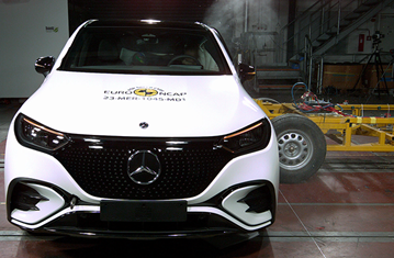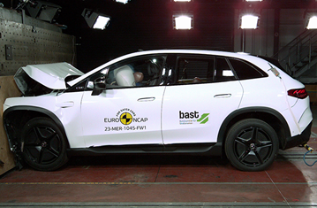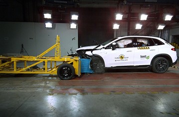The passenger compartment of the EQE SUV remained stable in the frontal offset test. Dummy numbers showed good protection of the knees and femurs of both the driver and passenger. Daimler showed that a similar level of protection would be provided to occupants of different sizes and to those sitting in different positions. Protection was good for all of the front passenger’s critical body areas. Analysis of the deceleration of the impact trolley during the test, and analysis of the deformable barrier after the test, revealed that the EQE SUV would be a somewhat aggressive partner in a frontal collision. In the full-width rigid barrier test, protection of all critical body areas was good or adequate for both the driver and the rear passenger. In the side barrier test, protection of all critical body areas was good and the EQE SUV scored maximum points in this part of the assessment. In the more severe side pole impact, protection was good or adequate for all critical parts of the body. Control of excursion (the extent to which a body is thrown to the other side of the vehicle when it is hit from the far side) was adequate. The EQE SUV has a counter-measure to mitigate against occupant to occupant injuries in such impacts and, in Euro NCAP’s test, dummy numbers showed good protection. However, Daimler were unable to demonstrate that the centre airbag provided robust protection for all occupant sizes and the result was penalised. Tests on the front seats and head restraints demonstrated good protection against whiplash injuries in the event of a rear-end collision. A geometric analysis of the rear seats also indicated good whiplash protection. The EQE SUV has an advanced eCall system which alerts the emergency services in the event of a crash. The car also has a system which applies the brakes after an impact, to avoid secondary collisions. Daimler demonstrated that if the car entered water the doors, if locked, could be opened within two minutes of power being lost but not that electric windows would remain functional long enough to allow occupants to escape.