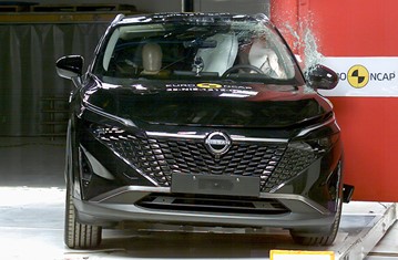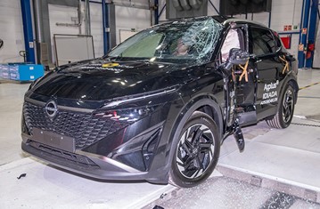 The passenger compartment of the Nissan Qashqai remained stable in the frontal offset test. Dummy readings indicated good protection of the knees and femurs of both the driver and the front seat passenger. Nissan showed that a similar level of protection would be provided to occupants of different sizes and to those sitting in different positions. Protection was good for all critical body regions of the front passenger. Analysis of the deceleration of the impact trolley during the test, and analysis of the deformable barrier after the test, revealed that the Nissan Qashqai would be a moderately benign impact partner in a frontal collision. In the full-width rigid barrier test, protection was good or adequate for all critical body regions of the driver. Protection of the chest of the rear passenger was rated as marginal, based on dummy readings of rib compression. In the side barrier test the Nissan Qashqai provided good protection to all critical body areas and scored maximum points. In the more severe side pole impact, protection was at least adequate for all critical body areas. Control of excursion (the extent to which a body is thrown to the other side of the vehicle when it is hit from the far side) was found to be marginal The Nissan Qashqai has a countermeasure to mitigate against occupant-to-occupant injuries in such impacts. Dummy numbers indicated good performance in Euro NCAP’s test, but Nissan could not demonstrate that performance would be symmetrical or at a similar level for different occupant sizes, and the score was penalised. Tests on the front seats and head restraints demonstrated good protection against whiplash injuries in the event of a rear-end collision. A geometric analysis of the rear seats also indicated good whiplash protection. The car has an advanced eCall system which alerts the emergency services in the event of a crash, but no system to prevent secondary impacts after the car has been in a collision. Nissan demonstrated that the doors would be openable to allow occupants to escape in the event of vehicle submergence.