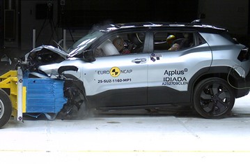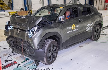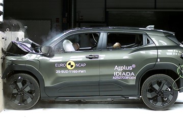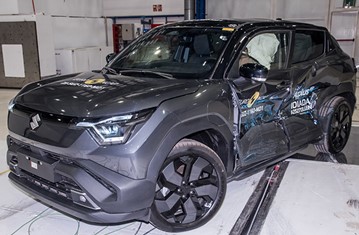 The passenger compartment of the Suzuki e VITARA remained stable in the frontal offset test. Dummy readings indicated good protection of the knees and femurs of both the driver and the front seat passenger. Suzuki showed that a similar level of protection would be provided to occupants of different sizes and to those sitting in different positions. Analysis of the deceleration of the impact trolley during the test, and analysis of the deformable barrier after the test, revealed that the Suzuki e VITARA would be a moderately benign impact partner in a frontal collision. In the full-width rigid barrier test, protection of the head was rated as marginal for the rear passenger. Dummy readings did not indicate injurious values and the marginal rating is based on forward movement of the head. Chest compression indicated marginal protection of that body region. In both the side barrier test and the more severe side pole impact, good protection was provided to all critical body areas and the Suzuki e VITARA scored maximum points in this part of the assessment. Control of excursion (the extent to which a body is thrown to the other side of the vehicle when it is hit from the far side) was found to be marginal The Suzuki e VITARA does not have a countermeasure to mitigate against occupant-to-occupant injuries in such impacts. Tests on the front seats and head restraints demonstrated good protection against whiplash injuries in the event of a rear-end collision. A geometric analysis of the rear seats also indicated good whiplash protection. The car has an advanced eCall system which alerts the emergency services in the event of a crash, and a system to prevent secondary impacts after the car has been in a collision. Suzuki demonstrated that the doors would be openable to allow occupants to escape in the event of vehicle submergence.