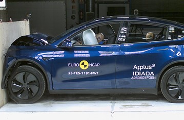 The passenger compartment of the Tesla Model Y remained stable in the frontal offset test. Dummy readings indicated good protection of the knees and femurs of both the driver and the front seat passenger. Tesla showed that a similar level of protection would be provided to occupants of different sizes and to those sitting in different positions. Protection was good for all critical body areas of the front passenger. Analysis of the deceleration of the impact trolley during the test, and analysis of the deformable barrier after the test, revealed that the Tesla Model Y would be a moderately benign impact partner in a frontal collision. In the full-width rigid barrier test, protection was good or adequate for all critical body regions of the driver rear seat passenger. In the side barrier test, the Tesla Model Y provided good protection to all critical body areas and scored maximum points. In the more severe side pole impact, protection of the chest was rated as marginal, based on dummy readings of rib compression, but was otherwise good. Control of excursion (the extent to which a body is thrown to the other side of the vehicle when it is hit from the far side) was found to be adequate The Tesla Model Y has a countermeasure to mitigate against occupant-to-occupant injuries in such impacts. The airbag performed well in Euro NCAP’s tests with dummy readings indicating good protection for both the driver and passenger. Tests on the front seats and head restraints demonstrated good protection against whiplash injuries in the event of a rear-end collision. A geometric analysis of the rear seats also indicated good whiplash protection. The car has an advanced eCall system which alerts the emergency services in the event of a crash, and a system to prevent secondary impacts after the car has been in a collision. Tesla demonstrated that the doors and windows would be openable to allow occupants to escape in the event of vehicle submergence.