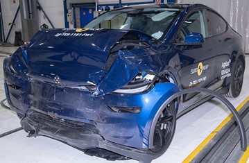 Protection of the head of a struck pedestrian or cyclist was largely good or adequate, with poor results recorded on the stiff windscreen pillars and at the base of the screen. Protection of the pelvis ranged from good to marginal, and that of the femur was also mixed. Protection of the knee and tibia was good or adequate at all test locations. The autonomous emergency braking system of the Tesla Model Y responds to vulnerable road users such as pedestrians and cyclists, as well as to other vehicles. In tests of its response to pedestrians the system performed well overall, with adequate protection of those to the rear of the car. The system also performed well in tests of its reaction to cyclists, including ‘dooring’, where a door is opened into the path of a cyclist approaching from behind. The system’s response to motorcyclists was good.