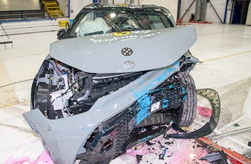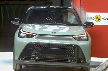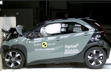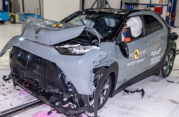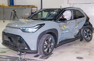 The passenger compartment of the Toyota Aygo X remained stable in the frontal offset test. The driver’s left femur force was slightly elevated and this precluded Toyota from demonstrating how well protected the knees and femurs would be for occupants of different sizes and for those sitting in different positions. Protection of this body region was rated as marginal, as was that of the driver’s chest, based on dummy readings of compression. Lower leg protection was weak. Analysis of the deceleration of the impact trolley during the test, and analysis of the deformable barrier after the test, revealed that the Toyota Aygo X would be a benign impact partner in a frontal collision. In the full-width rigid barrier test, protection was good or adequate for all critical body regions of the driver rear seat passenger. In both the side barrier test and the more severe side pole impact, good protection was provided to all critical body areas and the Toyota Aygo X scored maximum points in this part of the assessment. The car has no countermeasure to mitigate head to head contact between the front seat occupants, so far-side protection was rated as poor. Tests on the front seats and head restraints demonstrated good protection against whiplash injuries in the event of a rear-end collision. A geometric analysis of the rear seats also indicated good whiplash protection. The car has an advanced eCall system which alerts the emergency services in the event of a crash, and a system to prevent secondary impacts after the car has been in a collision. Toyota demonstrated that the doors and windows would be openable to allow occupants to escape in the event of vehicle submergence.