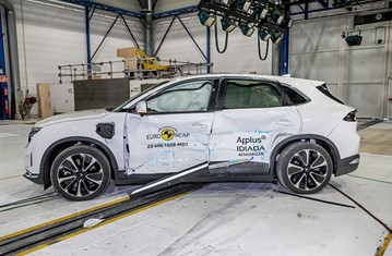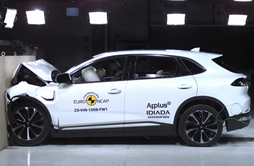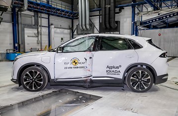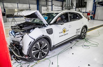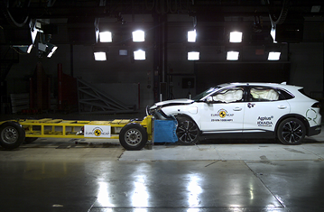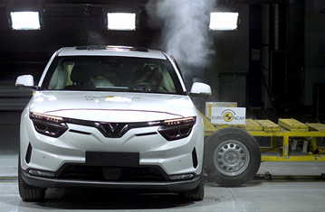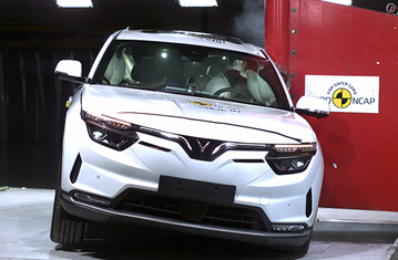 The passenger compartment of the VF8 remained stable in the frontal offset test. Dummy numbers showed good protection of the knees and femurs of both the driver and passenger. Structures in the dashboard were considered to pose a risk of injury to occupants of different sizes and to those sitting in different positions, and the score for this body area was penalised. In addition, the driver’s knee airbag deployed in a way that provided no protection to the inboard leg, attracting a further penalty. Analysis of the deceleration of the impact trolley during the test, and analysis of the deformable barrier after the test, revealed that the VF8 would be a somewhat aggressive impact partner in a frontal collision. In the full-width rigid barrier test, protection of the chest was rated as marginal for the driver and rear seat passenger, based on dummy readings of chest compression. A penalty was applied to the knee, femur and pelvis body region owing to the incorrect knee airbag deployment. In the side barrier test, dummy numbers indicated good protection of all critical body areas. However, the side curtain airbag deployed incorrectly, getting trapped on the interior trim, and a penalty was applied to the head. The same penalty was applied in the side pole test. Control of excursion (the extent to which a body is thrown to the other side of the vehicle when it is hit from the far side) was marginal. The VF8 has a counter-measure to mitigate against occupant to occupant injuries in such impacts. However, in Euro NCAP's test, the heads of the driver and front passenger made contact and protection was rated as poor. Tests on the front seats and head restraints demonstrated good protection against whiplash injuries in the event of a rear-end collision. A geometric analysis of the rear seats also indicated good whiplash protection. The VF8 has an advanced eCall system which alerts the emergency services in the event of a crash. The car also has a system which applies the brakes after an impact, to avoid secondary collisions. VinFast demonstrated that if the car entered water the doors, if locked, could be opened within two minutes of power being lost but not that electric windows would remain functional long enough to allow occupants to escape.