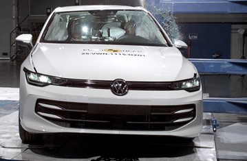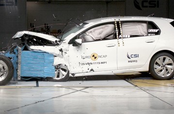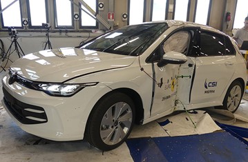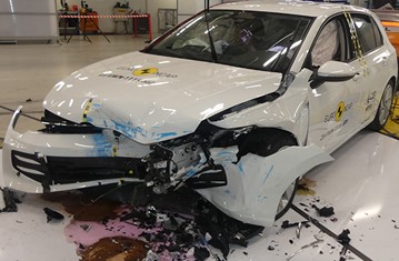 The passenger compartment of the VW Golf remained stable in the frontal offset test. Protection of the driver’s chest was rated as marginal, based on dummy readings of compression. Dummy readings indicated good protection of the knees and femurs of both the driver and the front seat passenger. VW showed that a similar level of protection would be provided to occupants of different sizes and to those sitting in different positions. Analysis of the deceleration of the impact trolley during the test, and analysis of the deformable barrier after the test, revealed that the VW Golf would be an aggressive impact partner in a frontal collision. In the full-width rigid barrier test, protection was good for all critical body regions of the driver and at least adequate for the rear seat passenger. In the side barrier test, the VW Golf provided good protection to all critical body areas and scored maximum points. However, in the more severe side pole impact, protection of the chest was weak Control of excursion (the extent to which a body is thrown to the other side of the vehicle when it is hit from the far side) was found to be adequate The VW Golf has a countermeasure to mitigate against occupant-to-occupant injuries in such impacts. The airbag performed well in Euro NCAP’s tests with dummy readings indicating good protection for both the driver and passenger. Tests on the front seats and head restraints demonstrated good protection against whiplash injuries in the event of a rear-end collision. A geometric analysis of the rear seats also indicated good whiplash protection. The car has an advanced eCall system which alerts the emergency services in the event of a crash, and a system to prevent secondary impacts after the car has been in a collision. VW demonstrated that the doors and windows would be openable to allow occupants to escape in the event of vehicle submergence.
