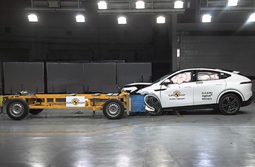 The passenger compartment of the G6 remained stable in the frontal offset test. Protection was good or adequate for all critical body areas of the driver and all good for the passenger. XPENG demonstrated that the same level of protection would be provided to the knees and femurs of occupants of different sizes and to those sitting in different positions. Analysis of the deceleration of the impact trolley during the test, and analysis of the deformable barrier after the test, revealed that the G6 would be a benign impact partner in a frontal collision. In the full-width rigid barrier test, protection was good or adequate for all critical body areas of the driver but protection of the rear passenger’s chest was rated as weak, based on dummy readings of compression. In both the side barrier and pole impact tests, protection of all critical body areas was good and the car scored maximum points in this part of the assessment. Control of excursion (the extent to which a body is thrown to the other side of the vehicle when it is hit from the far side) was found to be adequate. The G6 has a countermeasure to mitigate against occupant-to-occupant injuries in such impacts. In Euro NCAP’s test the passenger dummy’s head contacted the shoulder of the driver dummy. Injury parameters were not excessive but the car was penalised for the contact. Tests on the front seats and head restraints demonstrated good protection against whiplash injuries in the event of a rear-end collision. A geometric analysis of the rear seats also indicated good whiplash protection. The G6 has an advanced eCall system which alerts the emergency services in the event of a crash, and there is a system to prevent secondary impacts after the car has been in a collision. XPENG demonstrated that the doors and windows would be openable to allow occupants to escape in the event of vehicle submergence.