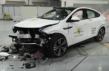 Protection of the head of a struck pedestrian or cyclist was predominantly good or adequate, with poor results recorded on the stiff windscreen pillars and at the base of the screen. Protection of the pelvis was poor at several test locations, as was that of the femur. However, protection of the knee and tibia was good at all test locations. The autonomous emergency braking (AEB) system of the XPENG can respond to vulnerable road users as well as to other vehicles. The system’s response to pedestrians and cyclists was good, scoring full points for the latter including ‘dooring’ protection, where a door is suddenly opened in the path of a cyclist approaching from behind. The collision avoidance system performed well in tests of its response to motorcyclists, scoring full points for AEB and scoring well for its lane support.