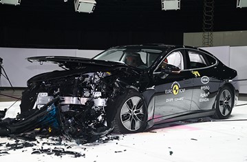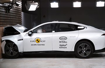 The passenger compartment of the P7 remained stable in the frontal offset test. Dummy numbers showed good protection of the knees and femurs of both the driver and passenger. XPENG showed that a similar level of protection would be provided to occupants of different sizes and to those sitting in different positions. Protection of all critical body areas was good for the front passenger but the driver’s chest protection was rated as marginal, based on dummy readings of compression. Analysis of the deceleration of the impact trolley during the test, and analysis of the deformable barrier after the test, revealed that the P7 would be a benign impact partner in a frontal collision. In the full-width rigid barrier test, chest protection was again rated as marginal for the driver, based on dummy readings of compression. Otherwise, protection of both dummies was good in this test. In the side barrier test, protection of all critical body areas was good or adequate and, in the side pole impact, the P7 scored full points with good protection of all critical boday areas. Control of excursion (the extent to which a body is thrown to the other side of the vehicle when it is hit from the far side) was marginal. The P7 has a counter-measure to mitigate against occupant to occupant injuries in such impacts and this performed well in Euro NCAP's test. Tests on the front seats and head restraints demonstrated good protection against whiplash injuries in the event of a rear-end collision. A geometric analysis of the rear seats also indicated good whiplash protection. The P7 has an advanced eCall system which alerts the emergency services in the event of a crash. The car also has a system which applies the brakes after an impact, to avoid secondary collisions. XPENG demonstrated that if the car entered water, the doors, if locked, could be opened within two minutes of power being lost but did not demonstrate the duration for which windows would remain functional.