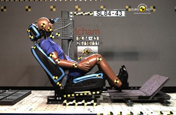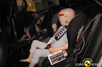 Forward movement of this dummy, sat in a forward facing restraint, was not excessive. In the side impact, both the 3 year and the 18 month dummy were properly restrained by their restraints, minimising the likelihood of dangerous head contact. The passenger airbag can be disabled, allowing a rearward facing child restraint to be used in that seating position. However, the system did not meet Euro NCAP's requirements regarding the clarity of information provided to the driver, and the system was not rewarded. Clear information is provided in the car regarding the danger of using a rearward facing restraint in the passenger seat without first disabling the airbag.