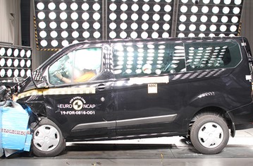 The passenger compartment remained stable in the frontal impact test. Dummy readings indicated good protection of the knees and femurs of the driver and passenger dummies. However, structures in the dashboard were thought to present a risk to occupants of different sizes or those sat in different positions. The Transit Custom scored maximum points in the side barrier test with good protection of all body regions. In the more severe side pole impact, protection of the chest and abdomen was adequate while that of the head and pelvis was good. Whiplash protection was assessed by analysing the geometry of front and rear seats and head restraints. The assessment revealed marginal protection against whiplash in the event of a rear-end collision.