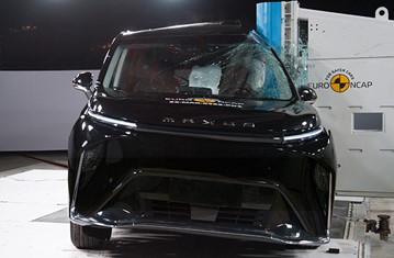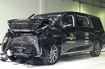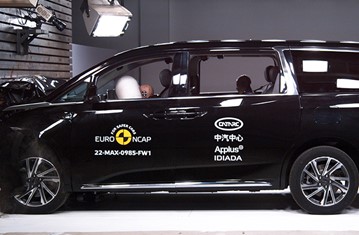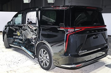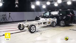 The passenger compartment of the Maxus MIFA 9 remained stable in the frontal offset test. Dummy readings indicated good protection of the knees and femurs of both the driver and passenger. Maxus demonstrated that a similar level of protection would be provided to occupants of different sizes and to those sitting in different positions. For the front passenger, good protection was provided to all critical body areas. Analysis of the deceleration of the impact trolley during the test, and analysis of the deformable barrier after the test, revealed that the car would be a benign impact partner in a frontal collision. In the full-width rigid barrier test, protection of all critical body regions was good for both the driver and rear passenger and the car scored maximum points in this part of the assessment. In the side barrier test, all critical parts of the body were well protected. In the more severe side pole test, dummy readings of rib compression indicated a marginal level of protection for the chest, with good protection of other critical areas. Control of excursion (the extent to which a body is thrown to the other side of the vehicle when it is hit from the far side) was found to be adequate. The MIFA 9 has a counter-measure to mitigate against occupant to occupant injuries in such impacts. The system performed well in Euro NCAP’s tests, with good protection of the occupants’ heads. Tests on the front seats and head restraints demonstrated good protection against whiplash injuries in the event of a rear-end collision. A geometric analysis of the rear seats also indicated good whiplash protection. The MIFA 9 has an advanced eCall system which alerts the emergency services in the event of a crash but it lacks a system to prevent secondary collisions.
