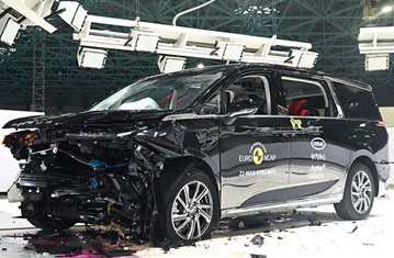The autonomous emergency braking (AEB) system of the MIFA 9 performed well in tests of its reaction to other vehicles. A seatbelt reminder system is fitted as standard to the front and rear seats and the car is equipped with a system to detect driver fatigue. The lane support system gently corrects the vehicle’s path if it is drifting out of lane, and also intervenes in some more critical situations. The speed assistance system identifies the local speed limit, and the driver can choose to let the car adjust the speed limiter accordingly. However, the speed limit recognition function did not meet Euro NCAP’s requirements and the car scored only for its speed limiter.