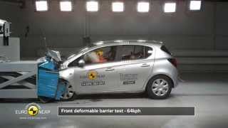 The Corsa scored maximum points in the dynamic tests for its protection of the 1½ year infant. In the frontal impact, forward movement of the head of the 3 year dummy, sat in a forward-facing restraint, was not excessive although chest and neck forces were marginally high. In the side barrier test, both dummies were properly contained within the protective shells of their restraints, minimising the risk of dangerous head contact with parts of the vehicle interior. The front passenger airbag can be disabled to allow a rearward-facing restraint to be used in that seating position. Clear information is provided to the driver regarding the status of the airbag and the system was rewarded. All of the child restraints for which the car is designed could be properly installed and accommodated in the Corsa. However, ISOFIX anchorages are available as an option on the front passenger seat and it was found that engagement of the ISOFIX probes was difficult for the Britax-Römer Duo Plus restraint.