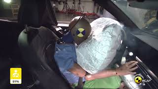 The passenger compartment of the GV60 remained stable in the frontal offset test. Dummy numbers showed good protection of the knees and femurs of both the driver and passenger. Genesis showed that a similar level of protection would be provided to occupants of different sizes and to those sitting in different positions. Analysis of the deceleration of the impact trolley during the test, and analysis of the deformable barrier after the test, revealed that the GV60 would be a benign impact partner in a frontal collision. In the full-width rigid barrier test, good or adequate protection was provided to all critical body areas, for both the driver and rear passenger. In the side barrier test, protection of all critical body areas was good and the car scored maximum points in this part of the assessment. In the more severe side pole impact, protection of all critical body areas was good or adequate. Control of excursion (the extent to which a body is thrown to the other side of the vehicle when it is hit from the far side) was found to be marginal. The GV60 has a counter-measure to mitigate against occupant to occupant injuries in such impacts and this performed well in Euro NCAP's test. Tests on the front seats and head restraints demonstrated good protection against whiplash injuries in the event of a rear-end collision. A geometric analysis of the rear seats indicated marginal whiplash protection. The GV60 has an advanced eCall system which alerts the emergency services in the event of a crash. The car also has a system which applies the brakes after an impact, to avoid secondary collisions.
