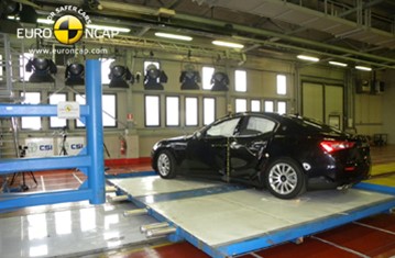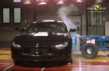 The passenger compartment remained stable in the frontal impact. Dummy readings indicated good protection of the knees and femurs of both the driver and passenger. Maserati showed that a similar level of protection would be available to occupants of different sizes and to those sat in different positions. In the side barrier test, the Ghibli scored maximum points, with good protection of all body regions. Even in the more severe side pole impact, protection of the chest was adequate and that of other body regions was good. The front seats and head restraints provided protection against whiplash injuries that was rated as marginal.