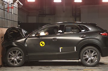 The passenger compartment of the CX-30 remained stable in the frontal offset test. Dummy readings indicated good protection of the knees and femurs of both the driver and passenger. Mazda showed that a similar level of protection would be provided to occupants of different sizes and to those sitting in different positions. In the full-width rigid barrier test, protection of both the driver and rear passenger was good for all critical body areas, and the CX-30 scored maximum points in this test. Likewise, in both the side barrier impact and the more severe side pole test the CX-30 scored maximum points, with good protection all-round. Tests on the front seats and head-restraints demonstrated good protection against whiplash injuries in the event of a rear-end collision. A geometric assessment of the rear seats also indicated good whiplash protection. The standard-fit 'Smart Brake Support' (SBS) performed well in tests of its functionality at the low speeds, typical of city driving, at which whiplash injuries often occur. With collisions avoided in all test scenarios, the CX-30 scored full points in this part of the assessment.
