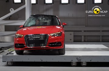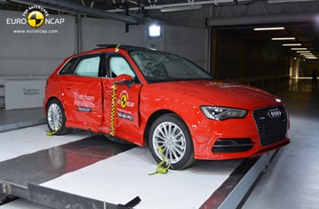 The passenger compartment remained stable in the frontal impact. There was insufficient pressure in the driver dummy's airbag to prevent the head from bottoming out the airbag on to the steering wheel. The score for the driver's head was penalised as a result. Dummy readings indicated good protection of the knees and femurs of the driver and passenger. Audi showed that a similar level of protection would be provided to occupants of different statures and to those sat in different seating positions, whose knees might contact the dashboard at different locations. In the side barrier impact, the A3 Sportback e-tron scored maximum points, with good protection of all critical body areas. In the more severe side pole impact, dummy readings of rib compression indicated marginal protection of the chest but other parts of the body were well or adequately protected. Whiplash protection in the event of a rear-end collision was rated as good for the front and rear seats. The A3 Sportback e-tron has an autonomous emergency braking system available as an option. The system operates from low speeds but, as it is not standard equipment, functionality at city-type speeds was not assessed.