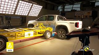 The passenger compartment of the Ford Ranger remained stable in the frontal offset test. Dummy readings indicated good protection of the knees and femurs of both the driver and passenger dummies. Ford demonstrated that a similar level of protection would be provided to occupants of different sizes and to those sitting in different positions. Analysis of the deceleration of the impact trolley during the test, and analysis of the deformable barrier after the test, revealed that the car would be an aggressive partner in a frontal collision and it was penalised accordingly. In the full-width rigid barrier test, protection of the chest of the rear passenger was marginal, based on dummy readings of chest compression but that of the dummy was good for all critical body areas. In both side barrier test, protection was good for all critical body regions and the Ranger scored maximum points in this test. In the more severe side pole impact, chest protection was rated as marginal, based on dummy readings of rib compression. Control of excursion (the extent to which a body is thrown to the other side of the vehicle when it is hit from the far side) was adequate. The Ranger has a counter-measure to mitigate against occupant to occupant injuries in such impacts. The system worked well in Euro NCAP’s tests, with good protection of the occupants’ heads. Tests on the front seats and head restraints demonstrated good protection against whiplash injuries in the event of a rear-end collision. A geometric analysis of the rear seats also indicated good whiplash protection. The Ranger does not have an advanced eCall system but is equipped with a system to prevent secondary collisions.