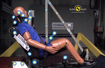 The passenger compartment remained stable in the frontal test. The driver's footwell was deformed but it did not rupture and retained its stability. Nevertheless, pedal displacements were high and that of the clutch incurred a penalty. Structures in the dashboard posed a hazard to the knees and femurs of the driver and passenger. In the side pole test, chest protection was poor, with rib deflections exceeding safe limits. However, protection of other body regions was good in both the side barrier and the pole tests. Protection against whiplash injury in rear impacts was rated as marginal.