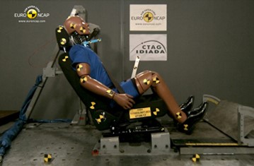 The Leon scored maximum points based on readings from the child dummies in the dynamic tests. In the frontal impact, forward movement of the head of the 3 year dummy, sat in a forward facing restraint, was not excessive. In the side impact, both dummies were properly contained by the protective shells of their restraints, minimising the risk of head contact with parts of the car's interior. The passenger airbag can be disabled to allow a rearward-facing restraint to be used in the front passenger seat. Clear information is provided to the driver regarding the status of the airbag and the system was rewarded. The dangers of using a rearward-facing restraint in that seating positions without first disabling the airbag is clearly and permanently indicated.
