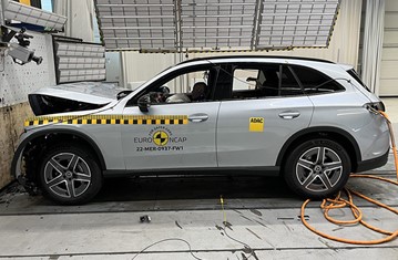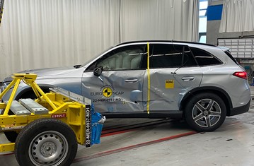 The passenger compartment of the Mercedes-Benz GLC remained stable in the frontal offset test. Dummy readings indicated good protection of the knees and femurs of both the driver and passenger. Mercedes-Benz demonstrated that a similar level of protection would be provided to occupants of different sizes and to those sitting in different position. Protection was good for all critical body areas of the passenger dummy. Analysis of the deceleration of the impact trolley during the test, and analysis of the deformable barrier after the test, revealed that the car would be a somewhat aggressive partner in a frontal collision. In the full-width rigid barrier test, protection of all critical body areas was good or adequate for both the driver and rear passenger. In the side barrier test, all critical body areas were well protected and the GLC scored maximum points for this test. However, in the pole test, protection of the chest was rated as weak, based on dummy readings of rib compression. Control of excursion (the extent to which a body is thrown to the other side of the vehicle when it is hit from the far side) was adequate. The GLC has a counter-measure to mitigate against occupant to occupant injuries in such impacts. The system performed well in Euro NCAP’s tests, with good protection of the occupants’ heads. Tests on the front seats and head restraints demonstrated good protection against whiplash injuries in the event of a rear-end collision. A geometric analysis of the rear seats also indicated good whiplash protection. The GLC has an advanced eCall system which alerts the emergency services in the event of a crash and a ‘Post-Collision Brake’ system applies the brakes to prevent secondary collisions.