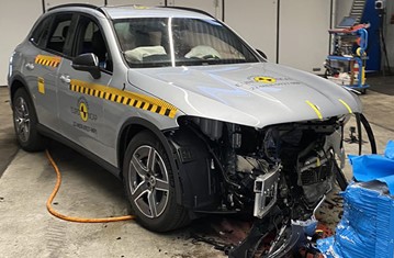 Protection of the head was very mixed, some areas showing good results and a few being poor. The bumper provided good protection to pedestrians’ legs but protection of the pelvis was almost completely poor. The autonomous emergency braking (AEB) system of the Mercedes-Benz can respond to vulnerable road users as well as to other vehicles. The system performed well in tests of its response to pedestrians and in tests of its response to cyclists, with collisions avoided in many cases.