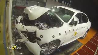 The passenger compartment remained stable in the frontal offset test. Dummy readings indicated good protection of the knees and femurs of both the driver and front passenger. Alfa Romeo showed that a similar level of protection was provided to occupants of different sizes and to those sat in different positions. In the full-width rigid barrier impact, good protection was provided to all critical body areas of both the driver and the rear passenger, and the Giulia scored maximum points. Full points were scored, too, in the side barrier test, all critical parts of the body being well protected. In the more severe side pole impact, good protection was provided to all body areas except the chest, protection of which was adequate. Tests of the front seats and head restraints showed demonstrated good protection against whiplash injury in the event of a rear-end collision, and a geometric assessment of the rear seats also indicated good whiplash protection. The Giulia has an autonomous emergency braking system as standard and tests showed it provided good protection against whiplash injuries in low-speed accidents, successfully avoiding impact in all of Euro NCAP's tests.
