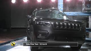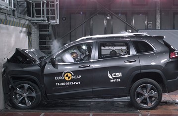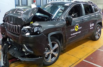 Tests on the front seats and head restraints demonstrated marginal protection against whiplash injuries in the event of a rear-end collision. A geometric assessment of the rear seats also indicated marginal whiplash protection. The Cherokee has, as standard, an autonomous emergency braking (AEB) system which operates at the low speeds, typical of city driving, at which many whiplash injuries occur. Tests of this functionality showed poor performance, the system failing to mitigate collisions at speeds below 20km/h in some scenarios. In any case, the car was not eligible for points for this technology owing to the marginal rating for its dynamic whiplash performance.