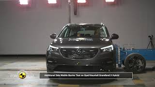 In the frontal offset test, protection of the 6 and 10 year dummies was good or adequate with the exception of the chest of the 6 year dummy, for which readings of decelerations indicated marginal protection. In the side barrier test, protection of both dummies was good for all critical body areas. The front passenger airbag can be disabled to allow a rearward-facing child restraint to be used in that seating position. Clear information is provided to the driver regarding the status of the airbag and the system was rewarded. All of the restraint types for which the Grandland X is designed could be properly installed and accommodated in the car.