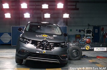The passenger compartment of the Espace remained stable in the frontal offset test. Dummy readings indicated good protection of the knees and femurs of the driver and passenger. Renault showed that a similar level of protection would be provided on the driver's side to occupants of different sizes and to those sat in different positions. However, on the passenger side, structures in the dashboard presented a risk of injury and the car was penalised. In the full-width rigid wall test, all critical body areas were well protected for the driver and protection of the rear seat occupant was good or adequate. In the side impact barrier test, dummy readings showed good protection of all critical body areas. However, the rear driver's side door opened during the test, presenting a risk of ejection for those in the vehicle and the score was penalised. In the more severe side pole impact, dummy readings of rib compression indicated a marginal level of protection for the chest but protection of other parts of the body was good. Tests on the front seats and head restraints indicated good protection against whiplash injuries in the event of a rear-end collision. A geometric assessment of the rear seats indicated marginal whiplash protection. The Espace's autonomous emergency braking system operates from 30km/h upwards so did not qualify for an assessment of its whiplash protection.