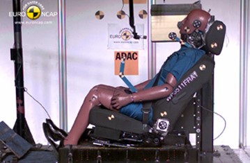 Forward movement of the 3 year dummy, sat in a forward facing restraint, was not excessive. In the side impact, both dummies were properly contained in the protective shells of their restraints, minimsing the risk of dangerous head contacts. The passenger airbag can be disabled to allow a rearward facing restraint to be used in that seating position. Clear information is provided regarding the status of the airbag and the system was rewarded.