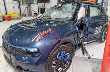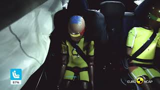 In the frontal impact, protection of all critical body areas of both the 6 year and 10 year dummy was good, apart from the neck of the 10 year dummy, protection of which was adequate. In the side barrier test, the Lynk & Co. 01 provided good protection to all critical body areas and scored maximum points. The front passenger airbag can be disabled to allow a rearward facing child restraint to be used in that seating position. Clear information is provided to the driver regarding the status of the airbag and the system was rewarded. All of the restraint types for which the 01 is designed could be properly installed and accommodated.
